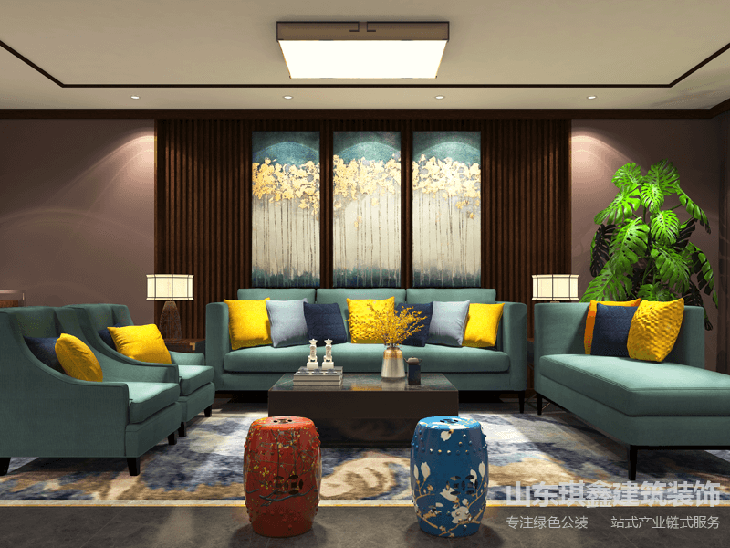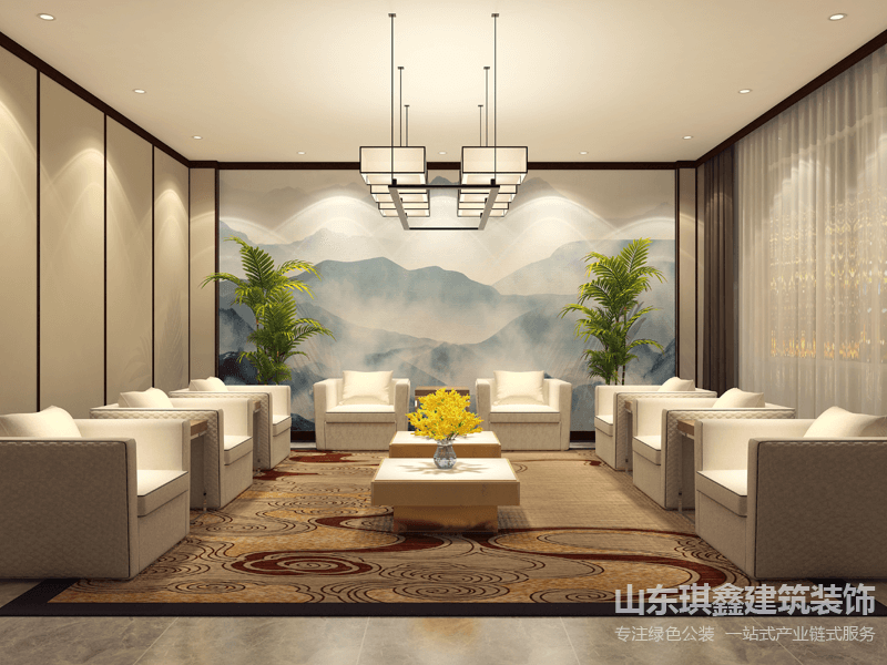 在裝飾元素上,我們巧妙地融入了現(xiàn)代商務(wù)與舒適生活的元素。例如,墻面上掛有現(xiàn)代藝術(shù)畫作和企業(yè)文化標(biāo)語,展示了公司的文化底蘊和品牌形象。同時,綠色植物的點綴使得整個空間更加生機勃勃,為員工帶來宜人的辦公環(huán)境。