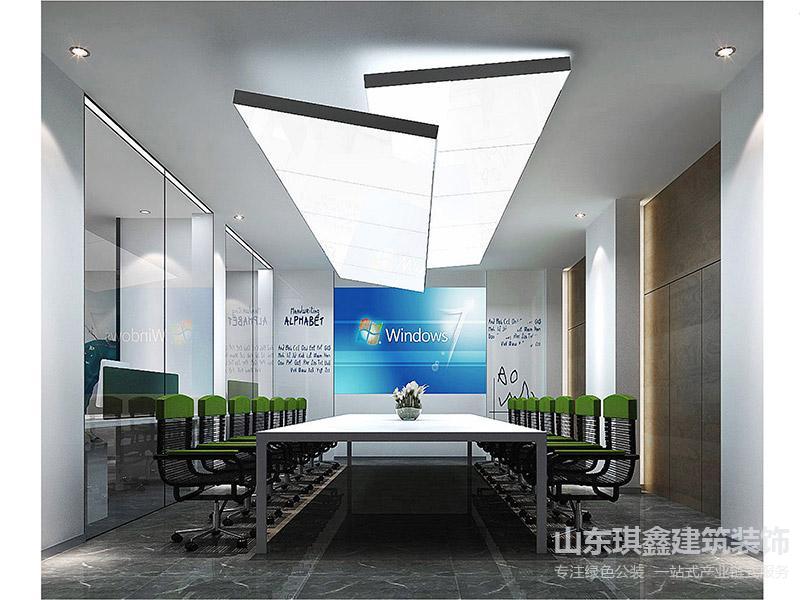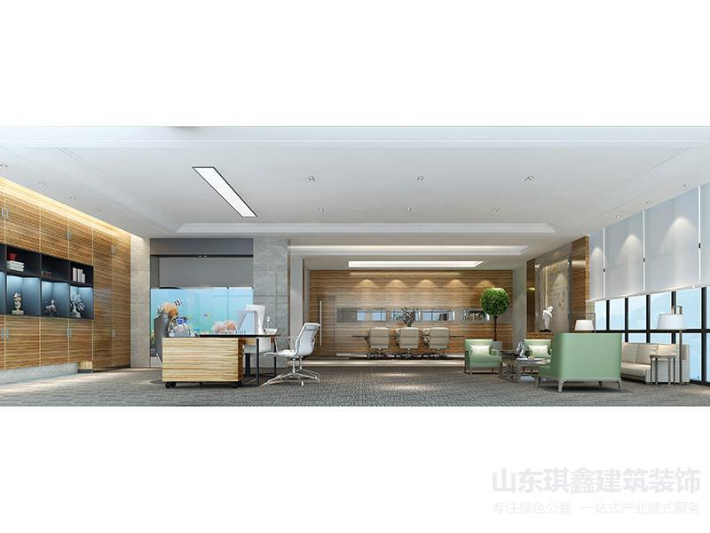 由于原走道較長(zhǎng),為凸顯建筑開間較舒適之優(yōu)點(diǎn),設(shè)計(jì)師特意設(shè)計(jì)了過(guò)道各柱體間鑲嵌不銹鋼條以及磨砂玻璃幕墻,既保證了空間透光的“靈透”感又打破了玻璃墻面的呆板,又提醒了行人幕墻的存在,防止無(wú)意識(shí)碰頭、沖撞等類似意外發(fā)生;同時(shí)也保證了辦公室的私密性。點(diǎn)綴地面用拼花色帶打破,與方正而美觀的吊頂和層層遞進(jìn)圍繞圓形中心的燈具上下呼應(yīng),突出空間的立體造型感,直線條的造型讓整個(gè)空間顯得穩(wěn)重大方,淺色系材料的運(yùn)用延續(xù)了靈動(dòng)而清澈的氣韻,大方莊重卻內(nèi)含現(xiàn)代時(shí)尚。而且色調(diào)淡雅的地毯、沙發(fā)、背景,形成了簡(jiǎn)潔的裝飾語(yǔ)言,和對(duì)稱的空間布局一起,顯得規(guī)范方整,并與環(huán)境形成交流,于是達(dá)成默契,突出了現(xiàn)代辦公環(huán)境講究效率的特征。