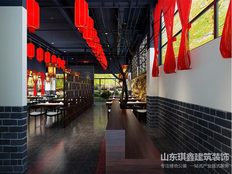 設(shè)計(jì)說明:在長清邢府私房菜的裝修設(shè)計(jì)中,設(shè)計(jì)師追求的是將傳統(tǒng)的中國風(fēng)格與現(xiàn)代的生活方式相融合,為顧客創(chuàng)造一個(gè)富有文化底蘊(yùn)和舒適氛圍的用餐環(huán)境。首先,從家具布置上,設(shè)計(jì)師選擇了木制家具,這不僅符合中國傳統(tǒng)家居的特點(diǎn),更增添了一份自然與樸實(shí)之美。木質(zhì)家具的色澤和紋理賦予了整個(gè)空間一種溫暖和親切感,讓顧客能夠在用餐的同時(shí)感受到家的溫馨。為了營造濃郁的中國風(fēng)情,設(shè)計(jì)師在窗簾選擇上采用了紅色的燈籠窗簾。紅色在中國傳統(tǒng)文化中象征著喜慶和吉祥,而燈籠則是中國傳統(tǒng)節(jié)日和慶典的標(biāo)志之一,因此紅色燈籠窗簾不僅為空間增添了一抹熱烈和歡樂,也讓顧客在用餐時(shí)仿佛置身于節(jié)日的氛圍中。整體而言,長清邢府私房菜的裝修效果體現(xiàn)了設(shè)計(jì)師對中國傳統(tǒng)文化的尊重與發(fā)揚(yáng)。通過木制家具、紅色燈籠窗簾等元素的巧妙搭配,打造出了一個(gè)既具有現(xiàn)代生活品質(zhì),又充滿中國傳統(tǒng)風(fēng)情的用餐空間,為顧客帶來了一次身心愉悅的用餐體驗(yàn)。